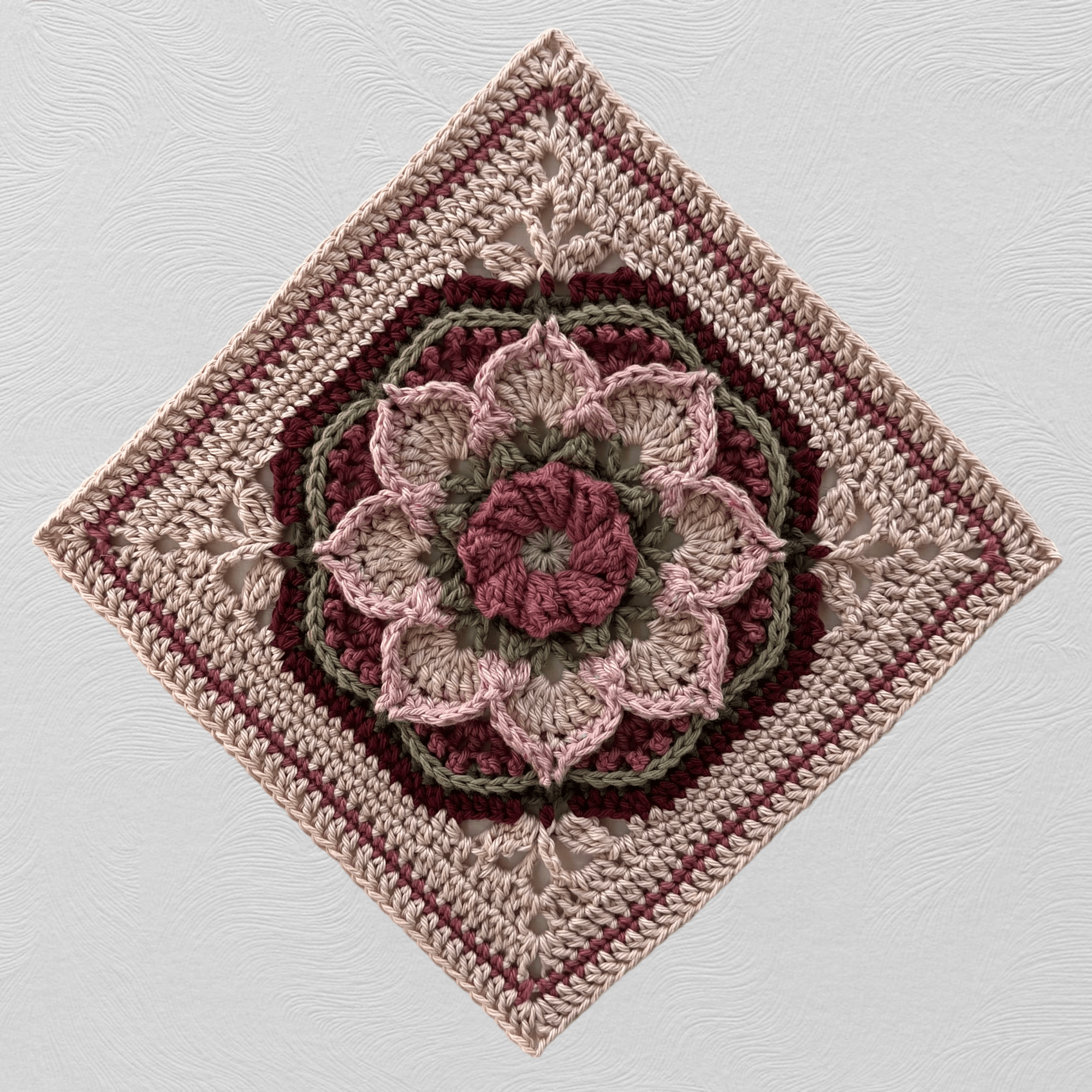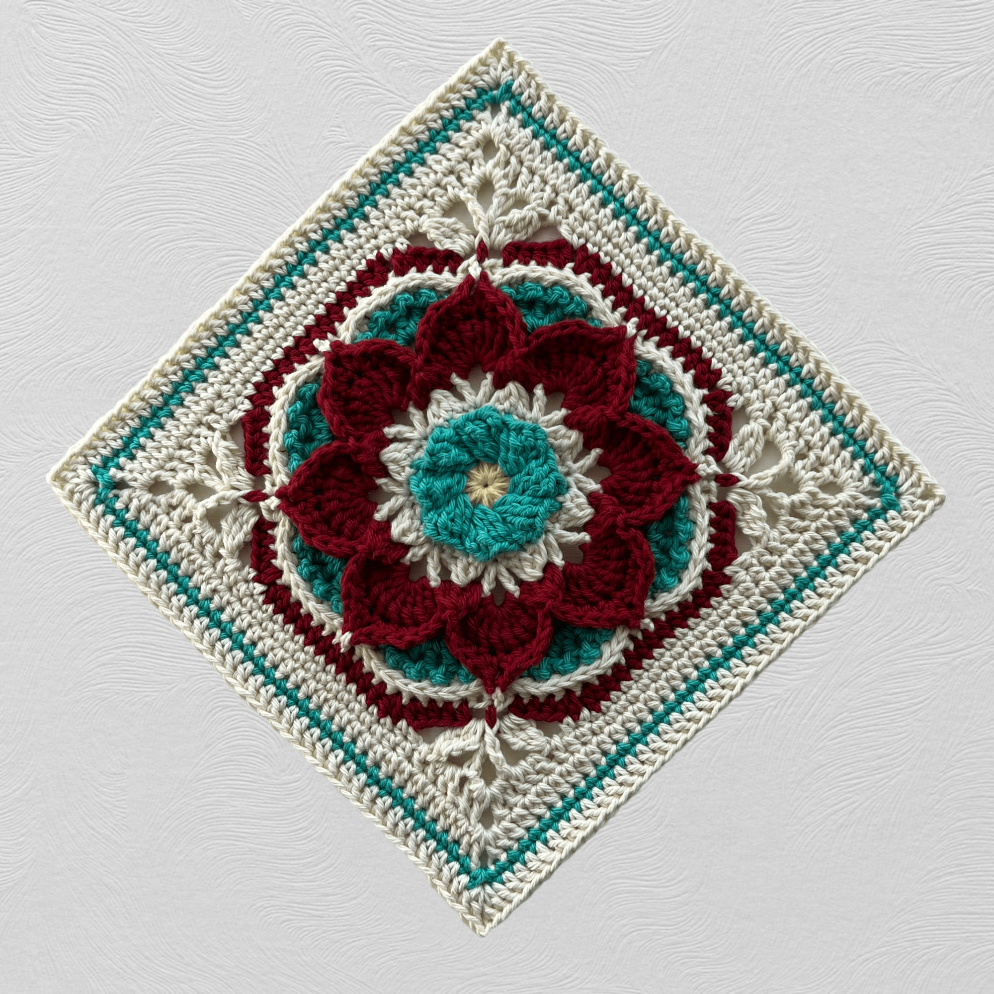 This square is perfect when added with other squares for an afghan blanket, throw pillow, purse or even a tote bag! Your imagination is the only restriction for a creative project.